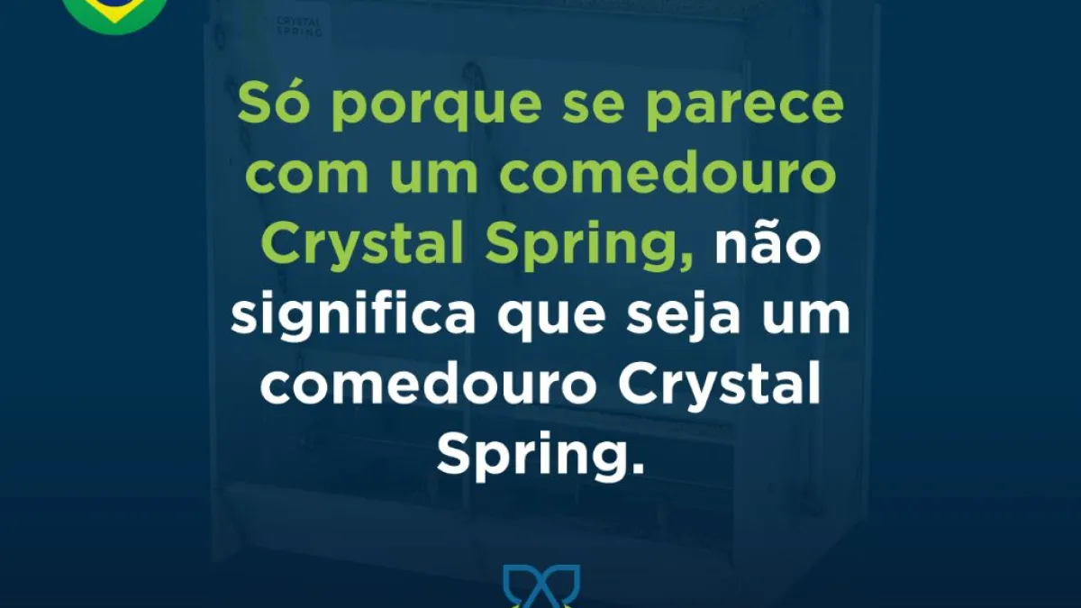 Enquanto muitos fabricantes anunciam seus comedouros como um “tipo Crystal Spring”, apenas o original é realmente um Crystal Spring. Crystal Spring investiu em pesquisa e inovação para criar produtos duráveis ​​e com performance comprovada. Não se deixe enganar pelas cópias mal feitas e que não funcionam!