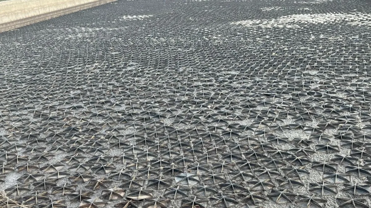 sobre la superficie de la balsa reduce la evaporación del agua de manera extraordinaria, siendo una solución fácil, eficaz y muy recomendable para el ahorro de agua. en estos momento de severa sequía sobre todo el Estado.Además, Hexa-Cover