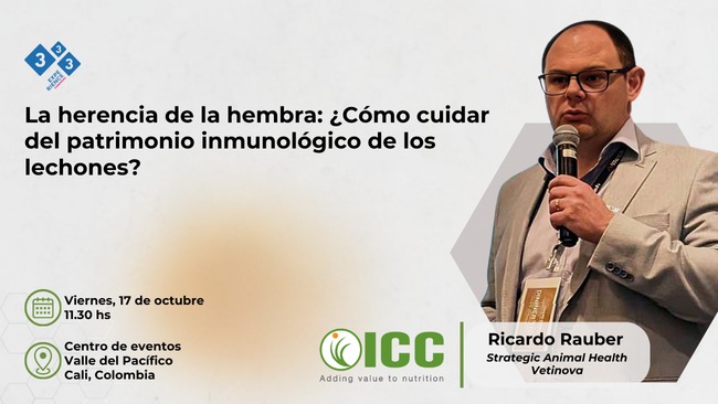 El próximo 17 de octubre, a las 11:30 h en el Salón 3, ICC desarrollará el taller titulado “La herencia de la hembra: ¿Cómo cuidar del patrimonio inmunológico de los lechones?”.