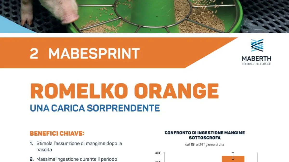Mabesprint è una linea di mangimi completi che supporta i suinetti nella transizione dal latte al mangime, stimolando il loro appetito e massimizzando l’ingestione durante tutto il periodo sottoscrofa.