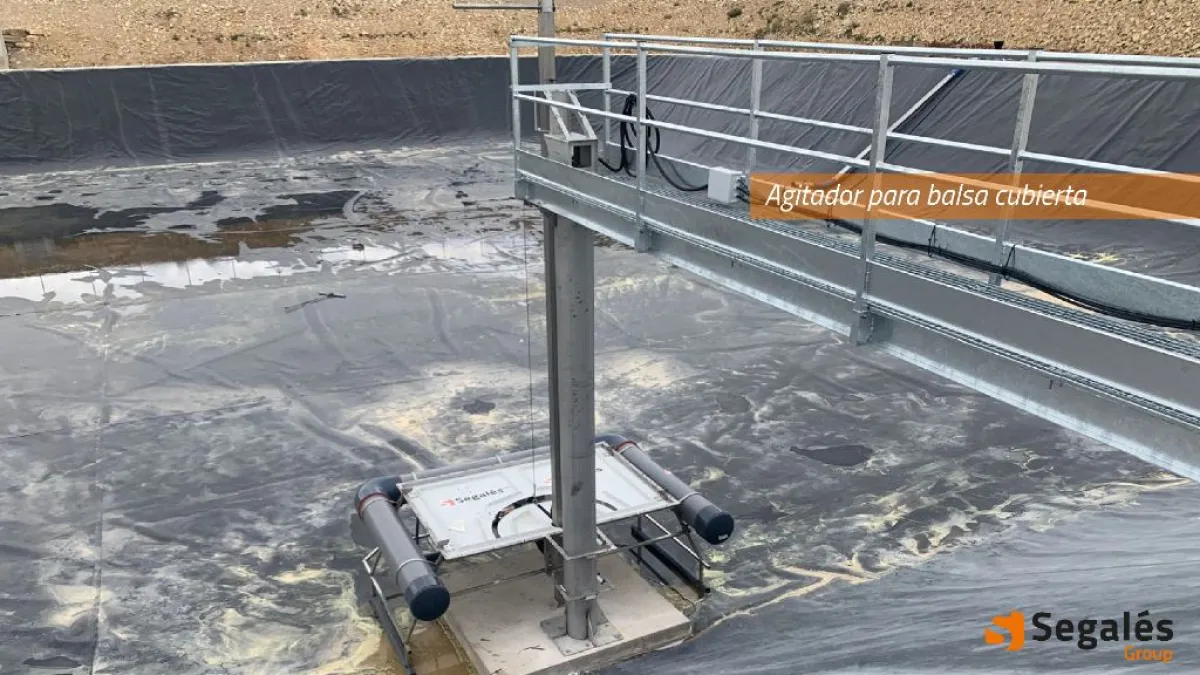 Agitador sumergible diseñado para remover fosas de tamaño medio o grande, y con alturas mínimas de 50 cm y máximas de hasta 4 m,