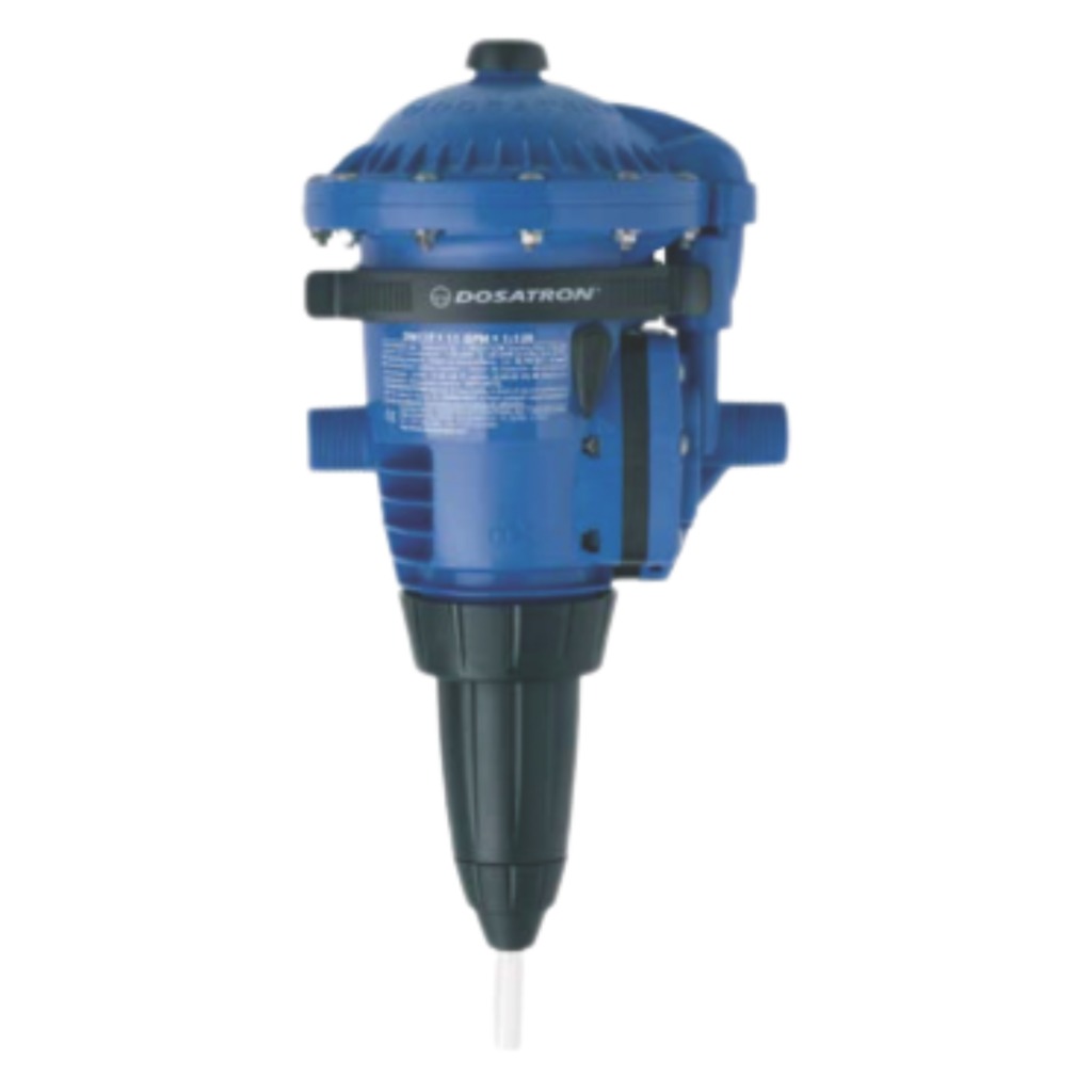 Medicadores y dispensadores químicos Dosatron accionados por agua, compensan por cambios en el flujo y la presión, proporcionando repetida- mente resultados consistentes para el tratamiento de sus animales.