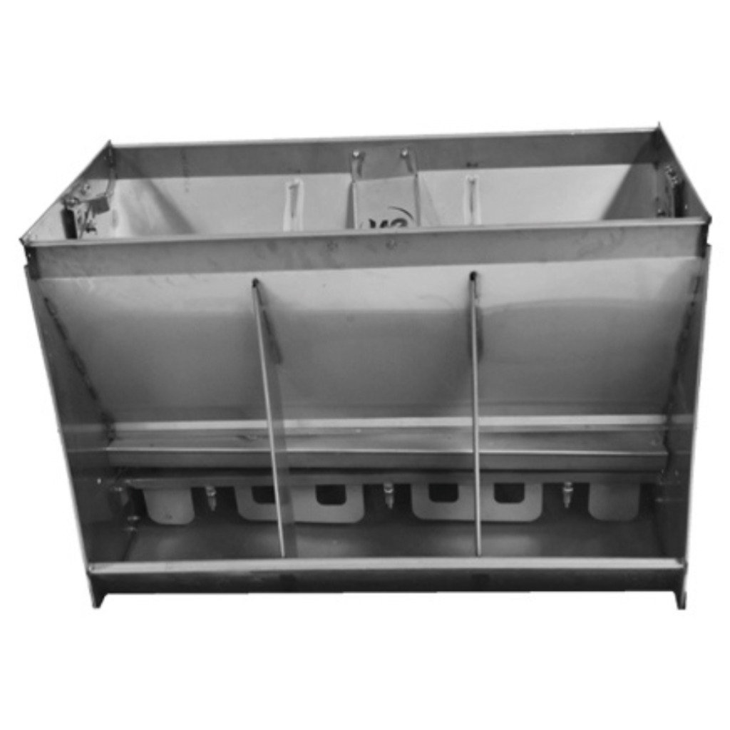 Comederos para destete, engorda y WTF. La mejor opción en comederos en el mercado. Fabricados en acero inoxidable Seco, Seco-húmedo de 3 bocas dobles, fácil de limpiar.
