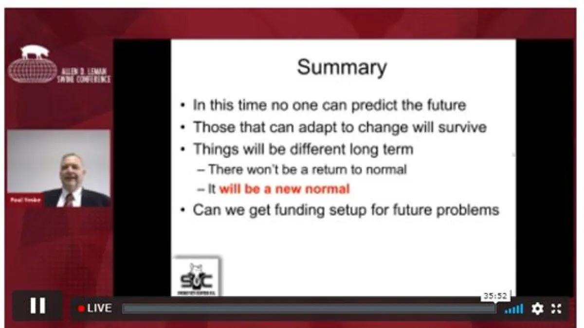 There is a need to figure out some way to get funding to help producers in future crisis situations. Paul Yeske at the 2020 Leman Swine Conference talking about "The swine producer's and veterinarian's response to COVID-19"