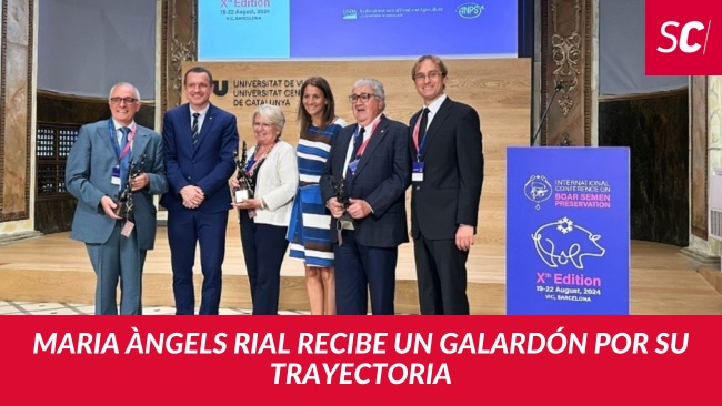 Maria Àngels Rial, fundadora y presidenta de Semen Cardona, recibe un galardón por su trayectoria en la inauguración del Boar Semen 2024