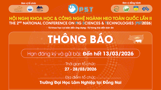Thư mời: HỘI NGHỊ KHOA HỌC & CÔNG NGHỆ NGÀNH HEO TOÀN QUỐC LẦN II – PST2026