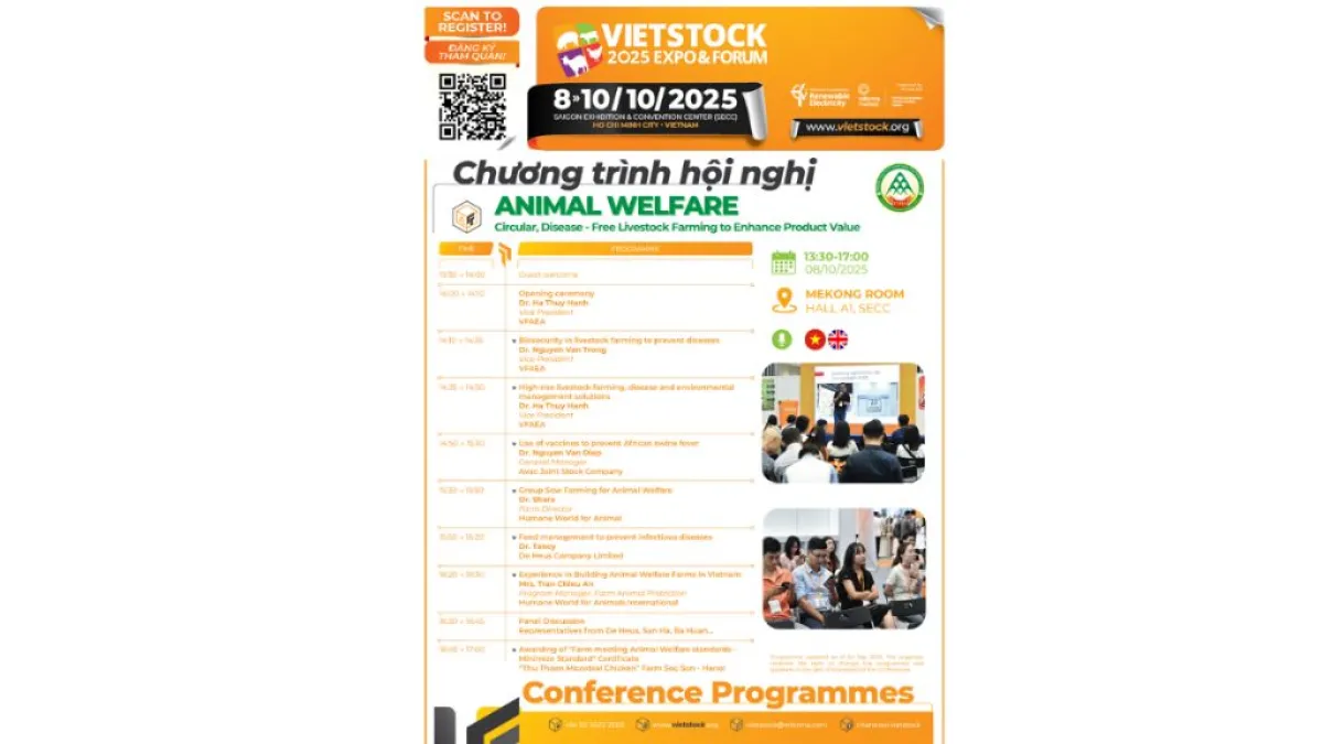The conference will provide practical insights into animal welfare, aiming to build a livestock industry that is economically efficient, biosecure, and environmentally sustainable.