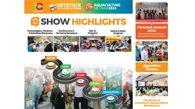 Vietstock 2024 and Aquaculture Vietnam 2024 will host a variety of programs and activities designed to promote sustainable development within the livestock and aquaculture industries:- Technologies, products & solutions showcase