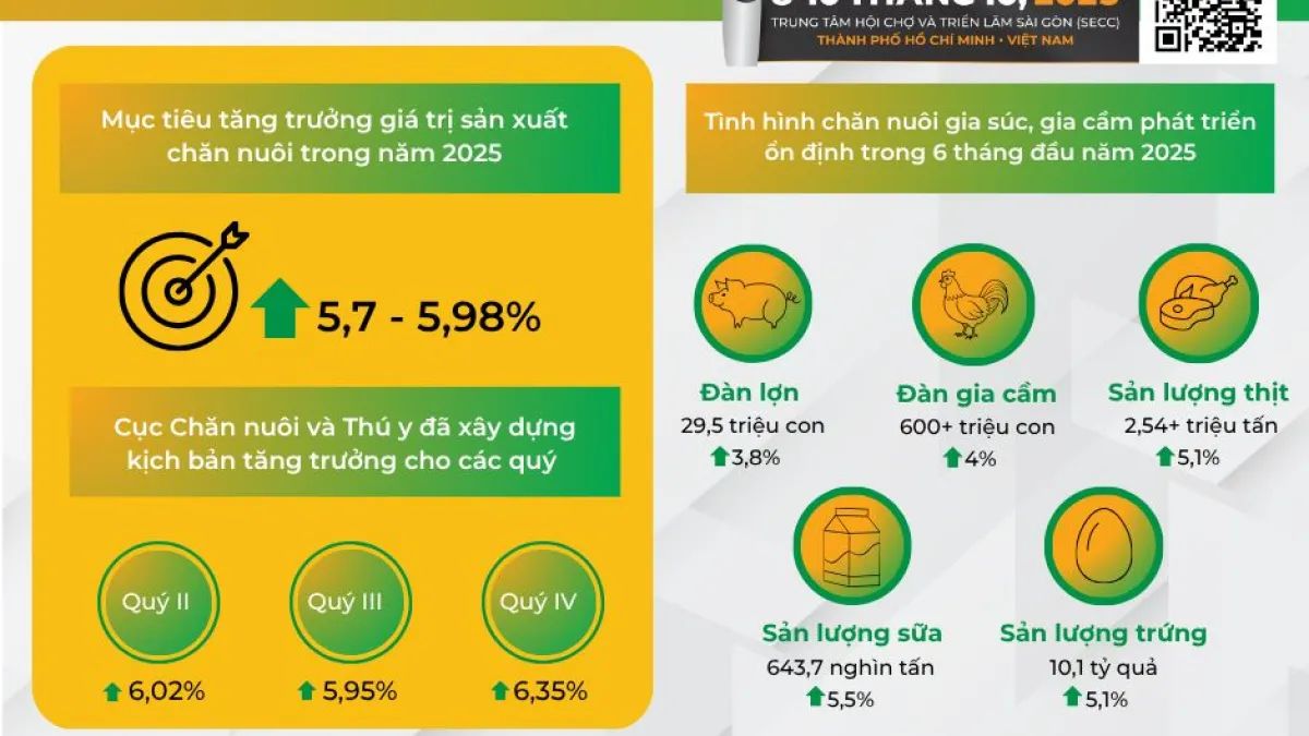 Ngành chăn nuôi Việt Nam tăng tốc, sẵn sàng bứt phá cuối nămĐây là thời điểm vàng để các doanh nghiệp trong và ngoài nước nắm bắt xu hướng, đẩy mạnh đổi mới và mở rộng hợp tác bền vững.