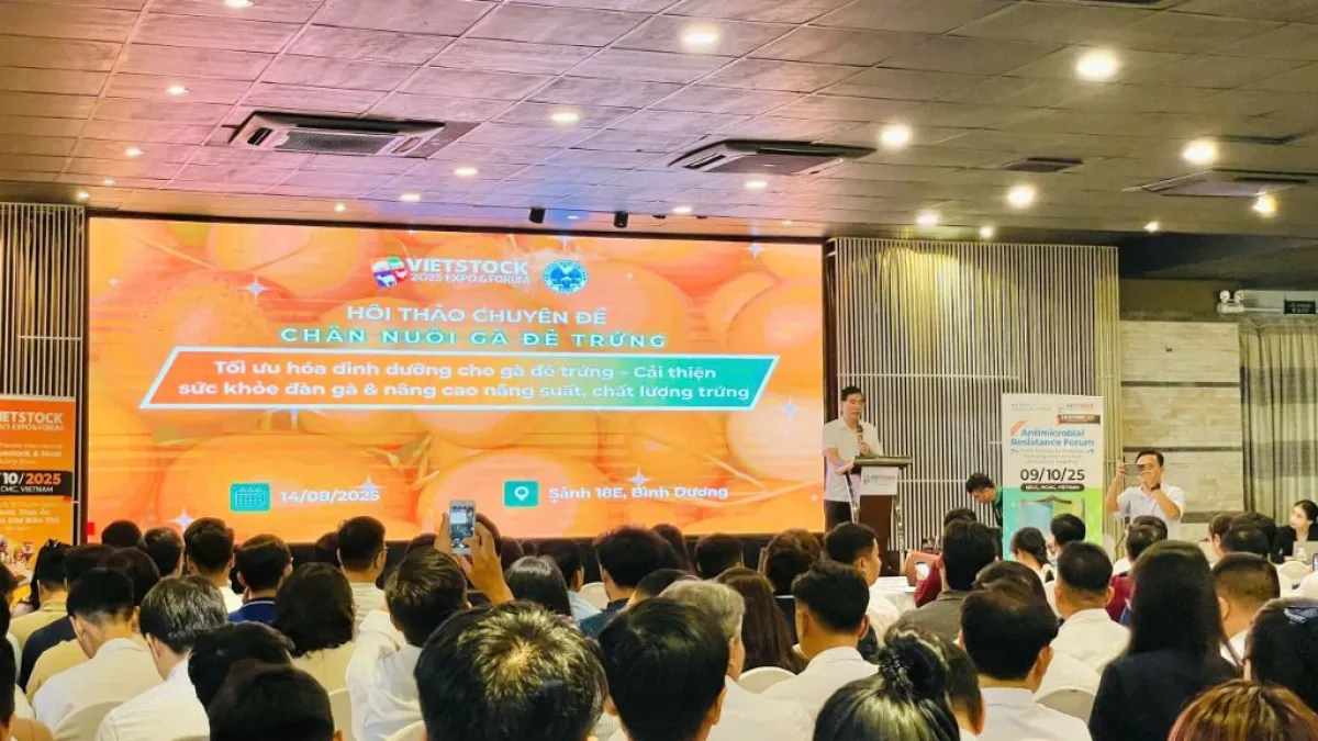 Hội thảo Chăn Nuôi Gà Đẻ Trứng tại Bình Dương Đang Diễn raKhông khí sôi động đang bao trùm Sảnh 18E, Bình Dương với hơn 300 đại biểu tham dự Hội thảo chuyên đề Gà đẻ trứng chính thức diễn ra. Chương trình quy tụ các chuyên gia hàng đầu chia sẻ về kỹ thuật chăn nuôi, giải pháp tối ưu dinh dưỡng, cùng những xu hướng mới giúp nâng cao năng suất và chất lượng trứng.