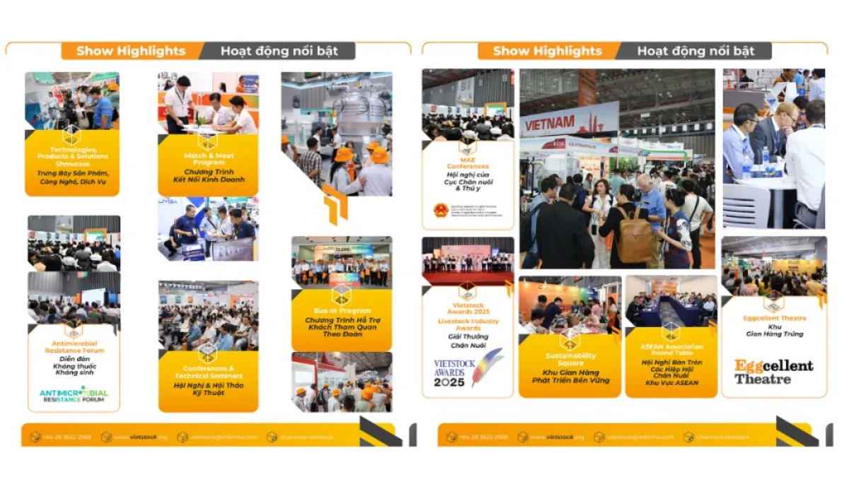 Với những hoạt động đa dạng và thiết thực, Vietstock 2025 sẽ là nơi hội tụ, chia sẻ kiến thức và mở ra cơ hội hợp tác cho cộng đồng ngành chăn nuôi. Đừng bỏ lỡ sự kiện hàng đầu ngành chăn nuôi Việt Nam. Đăng ký tham dự Vietstock 2025 ngay hôm nay!