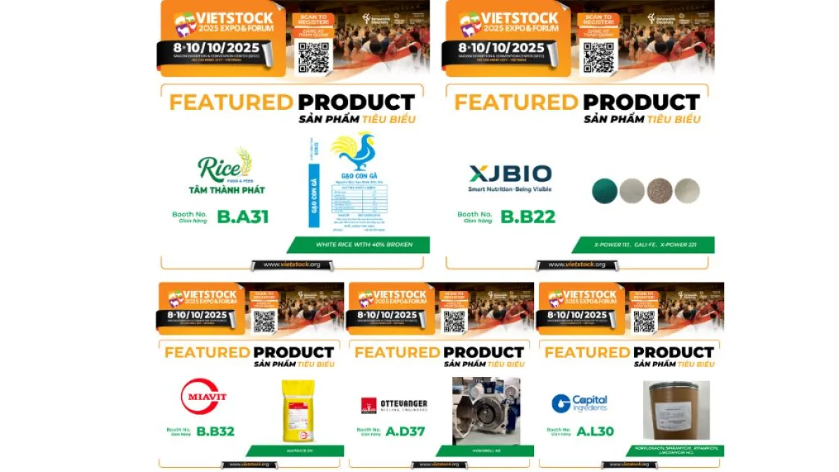 Nâng cao hiệu quả chăn nuôi cùng phụ gia hiện đại tại Vietstock 2025Hãy đến Vietstock 2025 để khám phá các công nghệ dinh dưỡng giúp tối ưu thức ăn, giảm chi phí và tăng hiệu quả chăn nuôi.