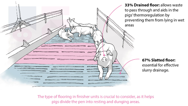 This time, we spotlight the practice “Solid flooring with extra space for finishers” under the topic Space allowance and flooring. The farm introduces solid floors, increased space allowance, and active slurry removal systems to reduce emissions and improve pig welfare. A functional, low-emission design that enhances comfort, reduces aggression, and supports pigs with long tails.
