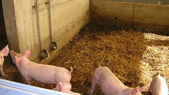 Dans ce post-sevrage sur paille, chaque case possède 2 abreuvoirs; combien selon vous peut-on mettre de porcelets au maximum?