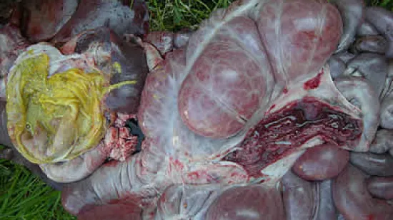 Quelle est cette lésion sur une truie reproductrice qui vient de mourir ?