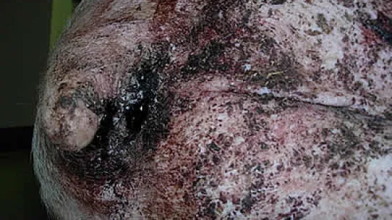Quelle est cette lésion sur une truie reproductrice qui vient de mourir ?