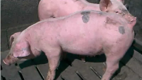 La plupart des porcs de ce parc présentent des taches foncées sur la peau. Quelle pourrait en être la cause ?