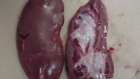 Ces lésions d'hydronéphrose proviennent d'un porc de 25 kg en début d'engraissement. A votre avis l'animal présentait: