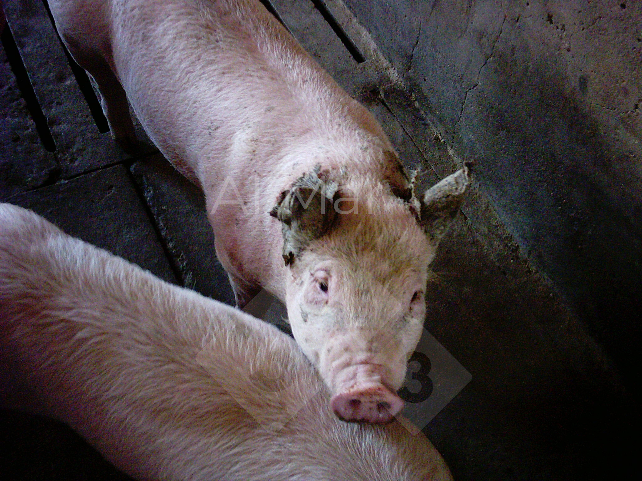 On constate une augmentation de la mortalité par mort subite chez les porcs d'engraissement. Les porcs post mortem présentent des anses intestinales distendues par des gaz, une couleur pourpre intense et sont remplis de liquide contenant beaucoup de sang.