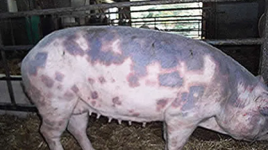 La plupart des porcs de ce parc présentent des taches foncées sur la peau. Quelle pourrait en être la cause ?