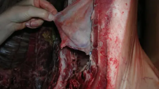 Ce porc a fait l'objet d'une saisie totale pour péricardite (inflammation de l'enveloppe du cœur), à votre avis que devrait t-on voir sur une carcasse normale après éviscération?