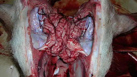 Cette image en coupe transversale d'un poumon de porc est caractéristique d'une pneumonie provoquée par: