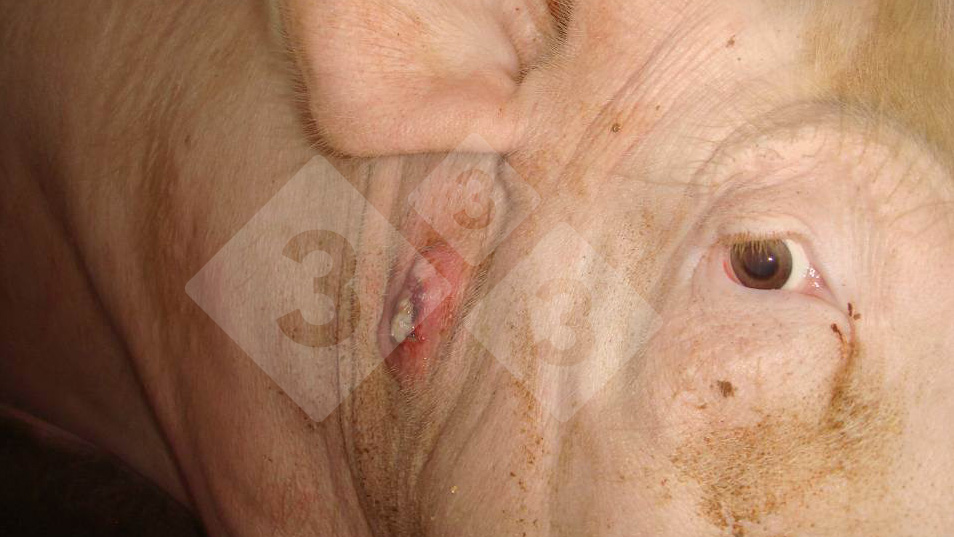 Beaucoup de truies ont des abcès sur un côté du cou. Quelle peut en être la cause?
