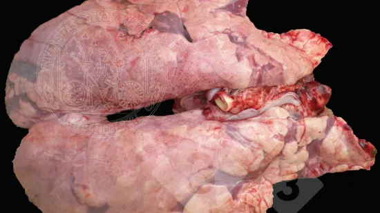 Cette image en coupe transversale d'un poumon de porc est caractéristique d'une pneumonie provoquée par: