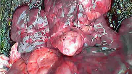 Cette image en coupe transversale d'un poumon de porc est caractéristique d'une pneumonie provoquée par: