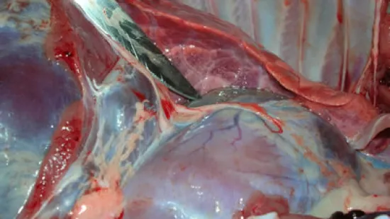 Cette lésion retrouvée sur un porc mort brutalement en début d'engraissement évoque-t-elle: