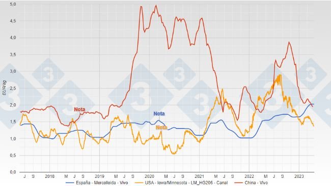 4 septembre - Après quatre mois dans une situation extrême, le prix glisse vers le bas - dans un mouvement sans panique - à la recherche d'un plancher. G. Burset analise la situation des cours du porc en Europe, Chine et les Étas-Unis.