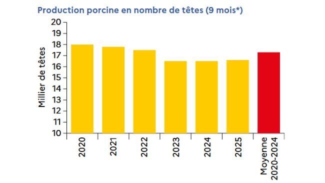 En 2025, la production porcine en France augmente légèrement (+0,5 %), mais le déficit commercial se creuse avec une hausse des importations et une baisse des exportations.