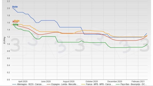 En Allemagne le marché se trouve plus équilibré tandis que en Espagne la cotation a affiché une hausse pour la troisième semaine consécutive.