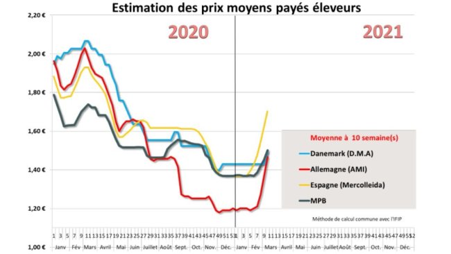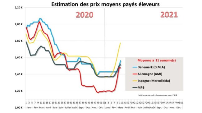 L’année 2021 a débuté sur des cours du porc stables dans les principaux bassins de production européens. Les niveaux de prix sont toutefois très bas comparés au début de l’année 2020, entre moins 30 et moins 40 % selon les pays. Les récents fériés ont laissé des reports d’abattage concrétisés par des hausses de poids importantes.