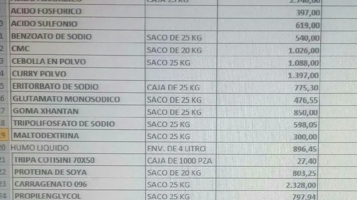 PRODUCTO Y SUB PRECIOS
