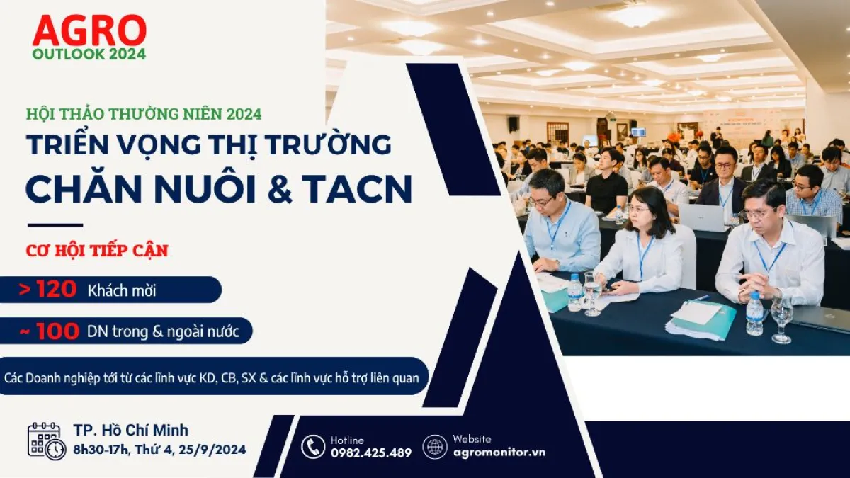 Tiếp nối thành công của các Hội thảo thị trường nông sản: Lúa gạo, Thức ăn chăn nuôi & Chăn nuôi từ năm 2023 tới nay, mỗi hội thảo quy tụ 150-200 khách mời tới từ các Doanh nghiệp trong nước và Quốc tế. Ngày 25 tháng 9 năm 2024 tại TP.HCM, AgroMonitor & Viettraders sẽ tiếp tục tổ chức Hội thảo thường niên thị trường các ngành hàng gồm Chăn nuôi & TACN 2024 chúng tôi trân trọng kính mời quý Doanh nghiệp, anh, chị làm trong ngành có nhu cầu giao lưu, kết nối và tìm hiểu thông tin về ngành tới tham dự hội thảo và tài trợ cho hội thảo.