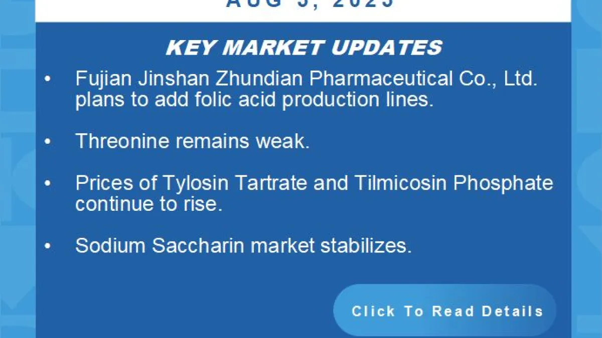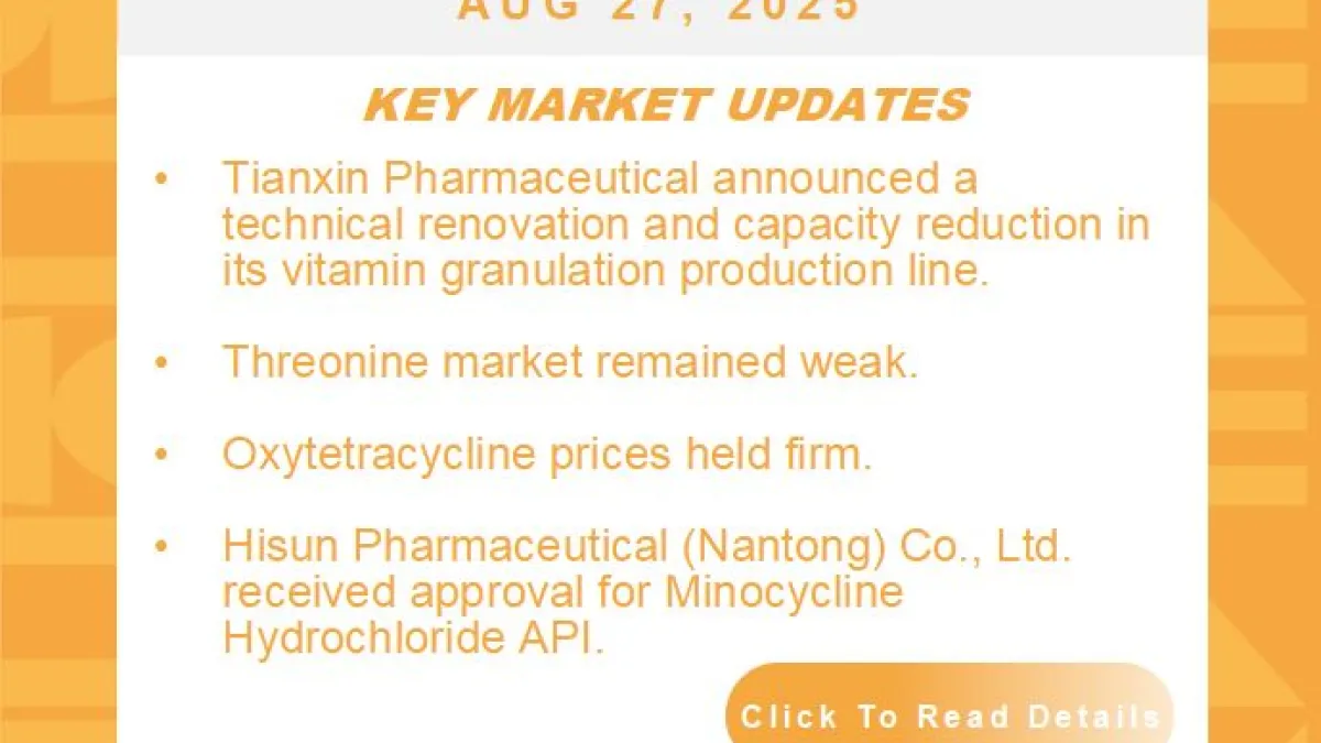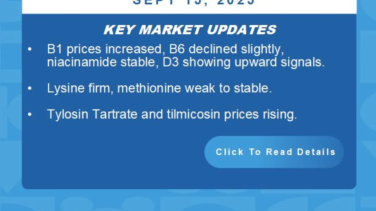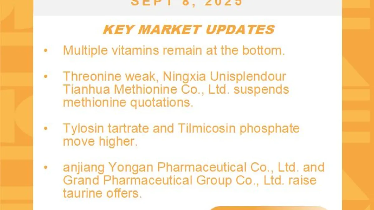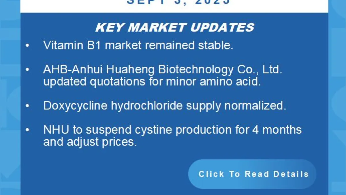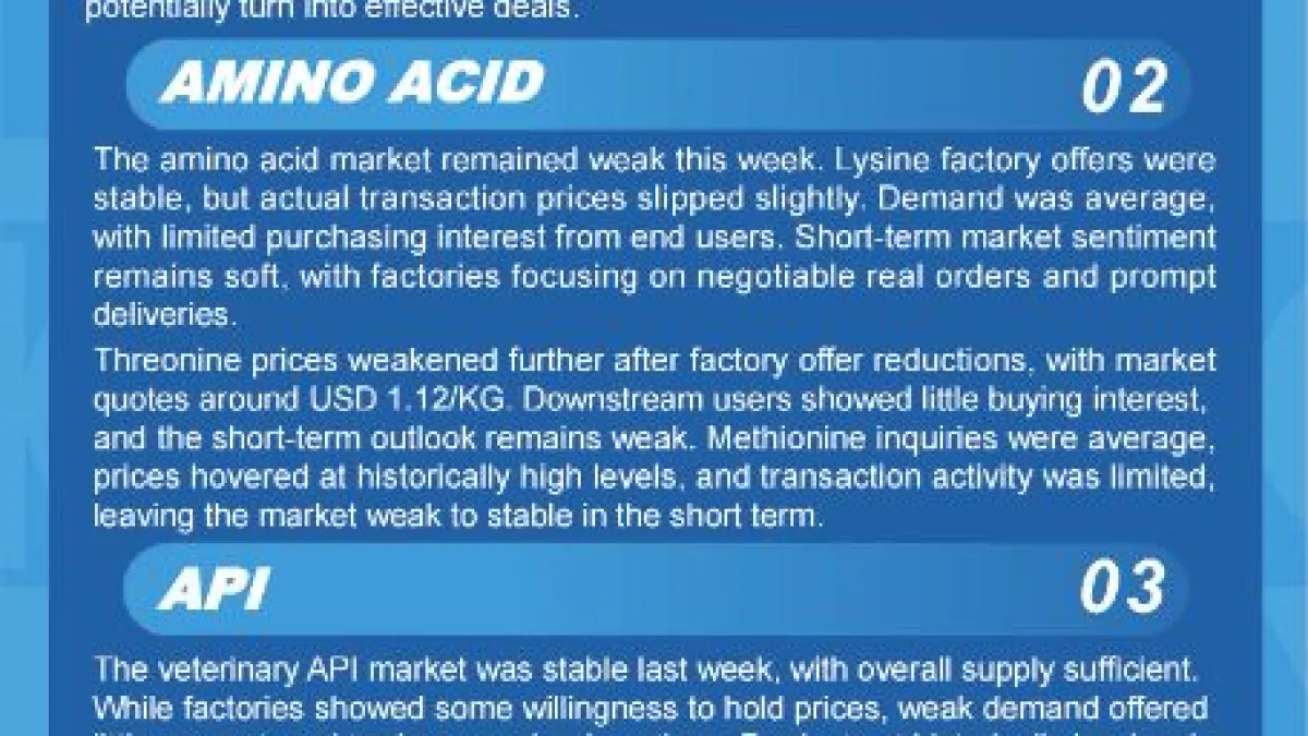 Amid weak demand, Vitamin B1 held steady, while minor amino acids like valine, tryptophan, and arginine lingered at low levels.