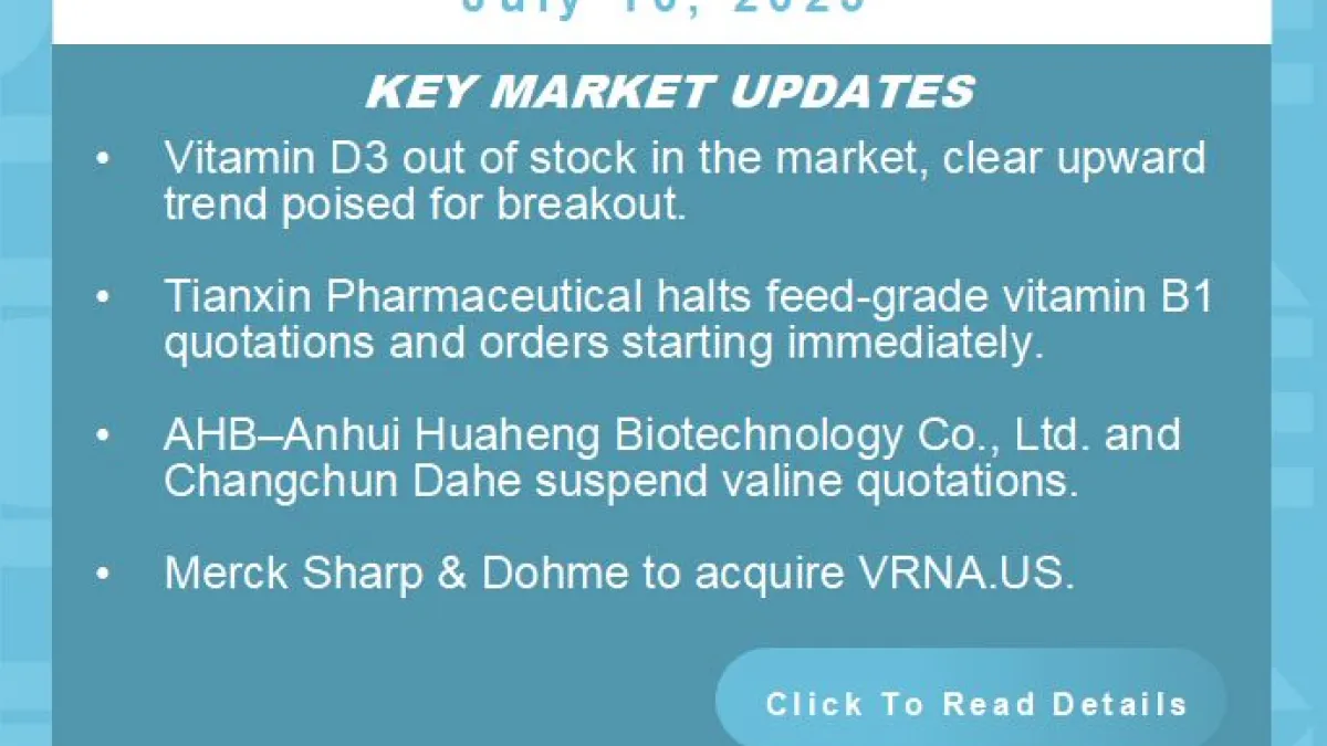Vitamin D3: Tight supply continues, with prices showing a clear upward trend—market poised for a breakout.