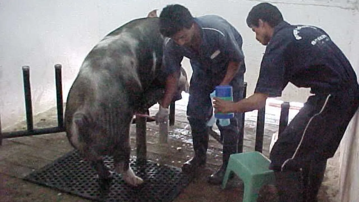 Monta de potro para extracción de semen en Abasolo, Guanajuato, México