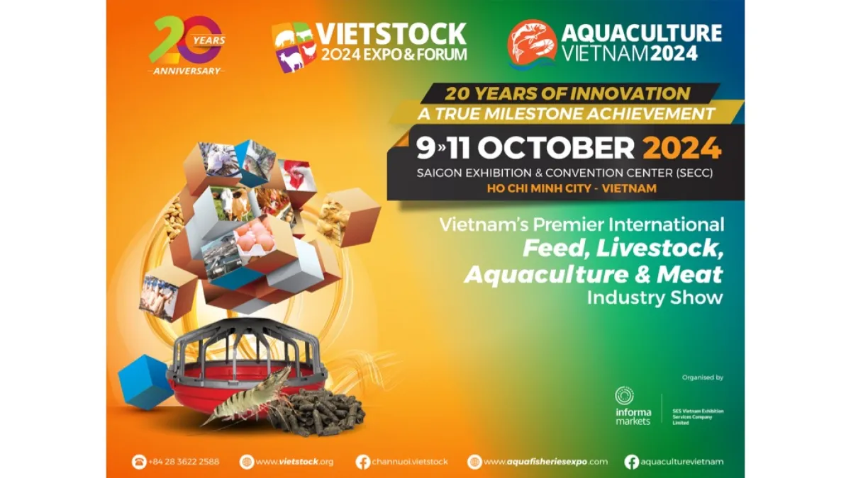 The Vietnam’s Premier International Feed, Livestock, Aquaculture & Meat Industry Show - VIETSTOCK 2024 will take place concurrently with AQUACULTURE VIETNAM 2024 - Vietnam’s International Aquaculture Industry Event.