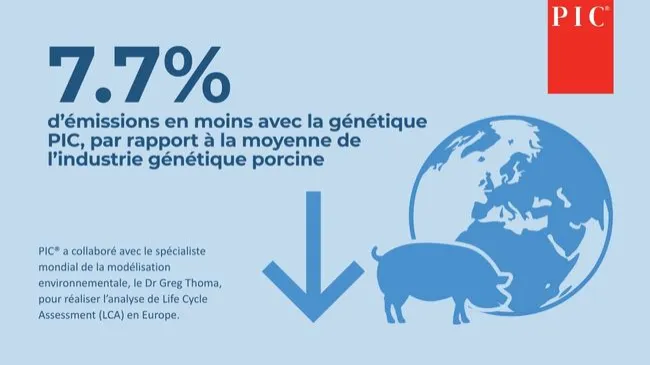 Une nouvelle analyse du “Life Cycle Assessment” menée en Europe confirme que le programme PIC complet (mâle + femelle) permet aux éleveurs de réduire les émissions de gaz à effet de serre (GES) de 7,7 % par rapport à la moyenne de l’industrie génétique porcine.